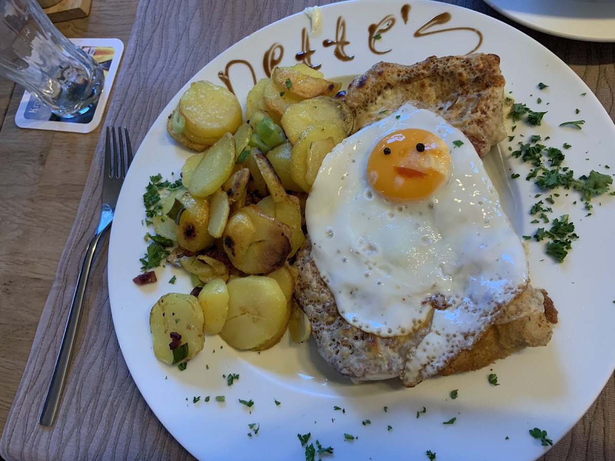 Desserts at Nette's bei Jelena are not to be overlooked. The Schokotraum (€6.50), a homemade chocolate cake drizzled in rich sauce, is a slice of heaven that invites you to indulge. For a taste of nostalgia, try the Palatschinken, a delightful pancake that pairs beautifully with seasonal fruits and creamy ice cream. It’s the perfect sweet finish to your meal!